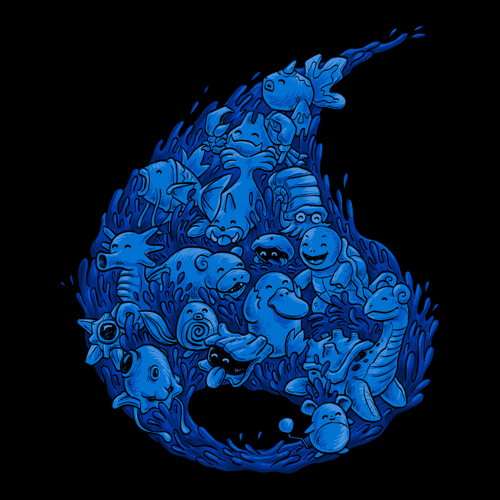 This's a series of doodle illustrations of Pokemon types. Every Pokemon is included in its own element type within the icon of the element.
